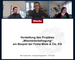 Heute fand im Rahmen unserer Master-Veranstaltung "Personalökonomik" ein virtueller Vortrag unseres Praxispartners Miele & Cie. KG statt, in dem Marc Sundermann über seine Arbeit zum Projekt "Mitarbeiterbefragung" referiert hat. Der Vortrag war mit über 100 Teilnehmenden sehr gut besucht, interessant und aufschlussreich. Herzlichen Dank an den Referenten!