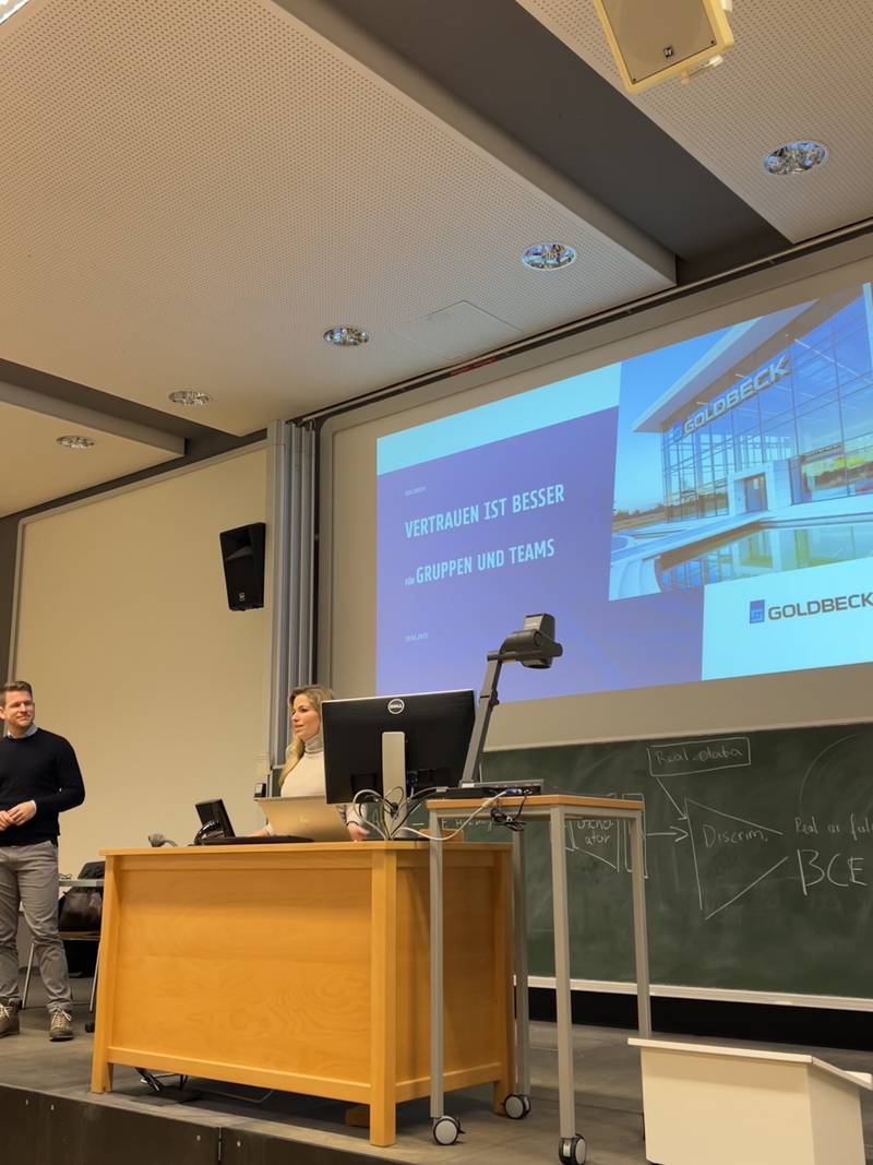 Am 19. Januar 2023 fand im Rahmen unserer Master-Veranstaltung "Organizational Behavior" ein spannender Praxisvortrag der Goldbeck GmbH statt, in dem uns die beiden Vortragenden Martin Balßen (Projektleiter Verkauf) und Julia Schröder (HR Business Partner) praktische Einblicke in ihre Arbeit gegeben haben. Herzlichen Dank für den Besuch an der Universität Osnabrück und den tollen und informativen Vortrag!